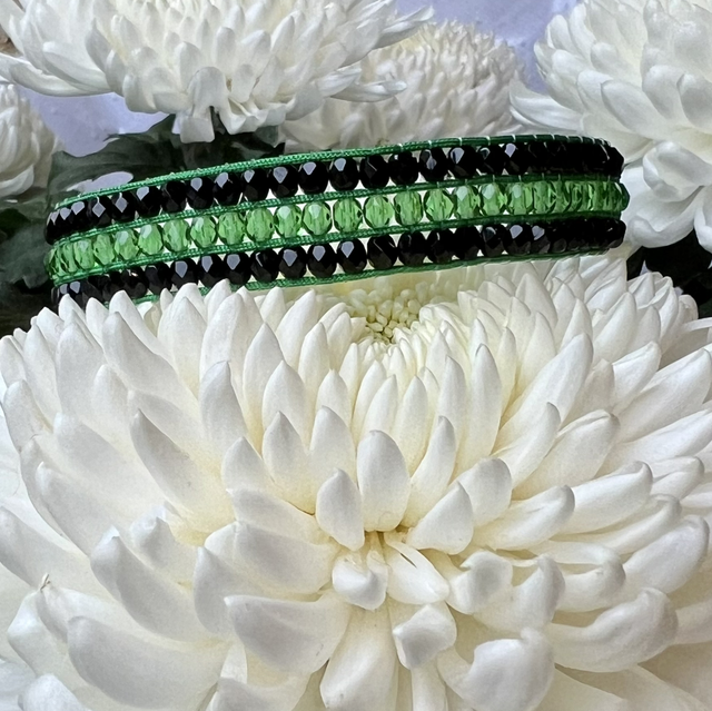 Bracelet tissé 3 rangs noir et vert