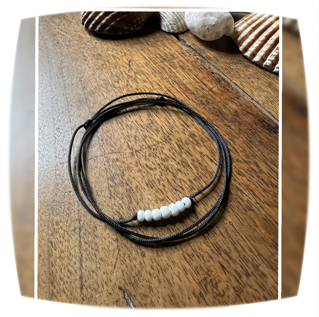 Collier Alex’ Réglable cordon noir et Perles de verre blanches